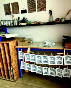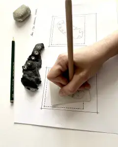 Réaliser une estampe. Technique de gravure en taille douce à la pointe sèche sur matrice sur cyclée en Tetra Pak. D’après un dessin original(aux) d’observation. Sujet(s) choisi(s) parmi la collecte de laisse de mer.