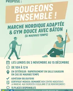 - Marche Nordique adaptée les lundis de 10h à 12h du 3 novembre au 15 décembre