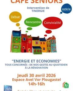 Le prochain café seniors organisé par la commission seniors de l'Astérie aura lieu le Jeudi 30 avril de 14h à 16h à la salle Mistral de l'espace Avel Vor.