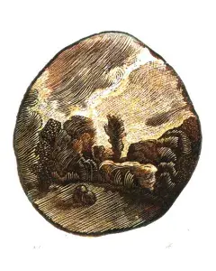 - D’abord, je choisis le bois en fonction de son essence et de sa forme : pommier, poirier, houx, buis… en lien avec le sujet à représenter. Je coupe des branches en tronçons de 2 cm que je polis jusqu’au rendu miroir. C’est sur ces bois que je reporte mon croquis et que je grave des traits fins au burin. En faisant varier les outils.