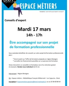 Conseils d’expert - Rendez-vous individuel "Être accompagné sur un projet de formation professionnelle"