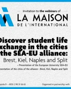 La Maison de l’international et l’Université européenne (SEA-EU) propose un webinaire le jeudi 2 avril, à 12h30, pour découvrir le programme d’échange étudiant dans les villes partenaires de l’alliance SEA-EU : Brest, Kiel, Naples et Split.