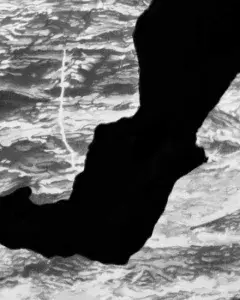 Ici gisent les dragons propose ainsi un récit aquatique dans lequel surgissent tantôt des îles fantomatiques, des monstres marins ou des créatures mystérieuses. Hic sunt dracones (ici vivent les dragons) avertissait les navigateurs occidentaux du danger de contrées inexplorées dans la cartographie médiévale. Dans l’espace de l’exposition, Gabrielle Decazes convoque les mythes pour mieux les abolir, nulles terres inexplorées n’existent désormais, notre siècle achève de dessiner les contours de la terre. Le spectateur est ainsi invité à déambuler dans une mise en scène où se côtoient deux mondes, l’ancien, révolu, et le contemporain, monde duquel nous arpentons déjà les vestiges. Par plusieurs moyens d’appropriation, les oeuvres voilent et dévoilent tour à tour l’invisible; jouant avec les illusions, détournant les codes de représentation. Les éléments naturels sont mis à l’échelle, standardisés, brouillent les pistes entre différentes temporalités et origines, et nous rappellent que le paysage est avant tout une construction du regard. Tel un rituel, l’artiste vient clore les yeux des monstres, tandis que nous portons notre attention aux signes d’un monde qui s’use et tend à disparaître. Le paysage laisse couler la matérialité des supports, la fluidité des éléments, et devient alors art divinatoire.