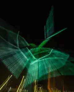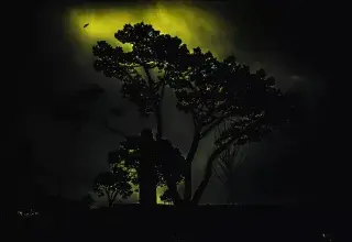 Nous avons choisi d'interpréter cette incertitude visuelle nocturne en utilisant de manière systématique la technique du flou en photographie. Chacun, chacune, peut alors interpréter le jeu des lumières et des ombres selon sa sensibilité et son imagination face à une réalité qui se dérobe.