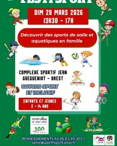 Pour la 22ème année, le Comité FSGT du Finistère et le Foyer Laïque de Saint-Marc proposeront une après-midi de découverte des activités sportives et artistiques en direction des enfants et des parents de la ville de Brest et de Brest métropole le dimanche 29 mars 2026 de 13h30 à 17h.