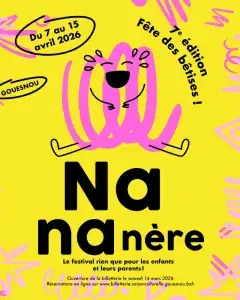 Du 7 au 15 avril 2026, Nananère revient pour une 7e édition faisant la part belle aux enfants et aux familles. Surprise… cette année, Nananère sort de l’ordinaire et joue les effrontés. La Ville de Gouesnou et ses associations partenaires invitent petits et grands à faire un pas de côté et pourquoi pas, quelques bêtises.