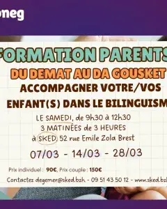 Pour le mois du breton, nous proposons une formation de breton pour les parents. L’objectif de cette formation est d’apporter aux parents, grands-parents ou personnel éducatif quelques phrases à utiliser au quotidien.