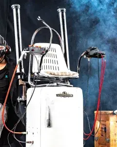 Frigo, le clown au nez noir, personnage corrosif et attachant, s’éprend d’un projet aussi absurde que vital. Celui de décoller, harnaché à son fidèle acolyte, son réfrigérateur transformé en fusée.