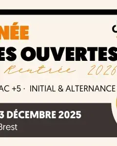 Rendez-vous à la Journée Portes Ouvertes de l’Open Campus à Brest le samedi 13 décembre de 9h à 17h pour découvrir nos 8 écoles supérieures spécialisées et échanger avec nos étudiants et notre équipe pédagogique.