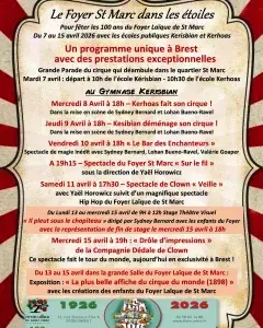 Sous le chapiteau des rêves et des souvenirs, là où les rires résonnent et les étoiles dansent au-dessus de la piste… le Foyer Laïque de Saint-Marc célèbre un siècle d’audace, de partage et de créativité !