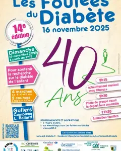 Pour sa 14ème édition, l'Association des Jeunes Diabétiques du Finistère (AJD29) et le Club d'Athlétisme de Guilers organisent les Foulées du Diabète le dimanche 16 novembre à Guilers.