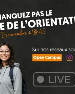 Mardi 25 novembre à 18h45, nous vous donnons rendez-vous en direct sur Instagram et TikTok pour un live consacré à l’orientation et à la vie sur notre campus.