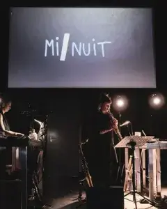 En temps réel devant le public, ils conjurent un univers onirique qui se déploie, en noir et blanc, sur une musique influencée par le jazz et l’électro. C’est avec poésie et humour que Minuit nous entraîne dans un voyage intérieur. Une traversée fantastique à la recherche de la beauté, y compris dans nos parts d’ombre.