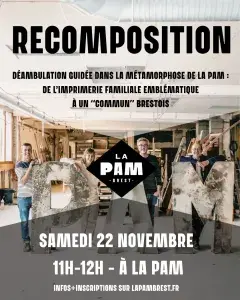 La PAM vous propose "recomposition", une visite + conférence publique d'Antoine Horellou. Antoine vous fait voyager dans la métamorphose de cette institution emblématique brestoise.