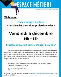 Semaine des transitions professionnelles - Webinaire "Problématiques de santé : changer de métier"