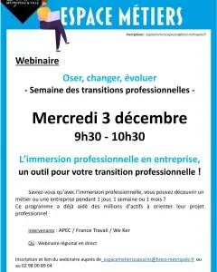 Semaine des transitions professionnelles - Webinaire sur l'immersion professionnelle en entreprise