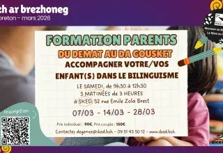 Accueil Sked Sked Imprimer Partager Partagez sur Facebook Partagez sur LinkedIn Partagez par email Culture / Loisir Mise à jour le 27/08/2025 52 rue Emile Zola 29200 Brest Sked 02 98 80 26 71 SKED, Maison de la langue et de la culture bretonnes du pays de Brest. Cours de breton, activités culturelles. Sked 52 rue Emile Zola 29200 Brest 02 98 80 26 71 Itinéraire Site internet Si on sortait ? Causerie en breton Culture / Loisirs Du Vendredi 7 novembre 2025, 18:00 au Vendredi 26 juin 2026, 20:00 Sked Quiz en breton Culture / Loisirs Le Mercredi 4 février 2026, 20:00 Sked Parlons du breton - Atelier de réflexion sur l'apprentissage du breton Culture / Loisirs Le Mercredi 11 février 2026, 20:00 Sked Causerie en breton avec Rozenn Milin - ISTOR, L'histoire de la Bretagne pour tous sur internet Culture / Loisirs Le Vendredi 20 février 2026 de 18:00 à 20:00 Sked Stage de breton Culture / Loisirs Du Lundi 23 février 2026, 09:30 au Vendredi 27 février 2026, 16:30 Sked Formation de breton pour les parents Culture / Loisirs Du Samedi 7 mars 2026, 09:30 au Samedi 28 mars 2026, 12:30 Sked