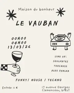 Soirée funky, house et techno vendredi 13 mars au Vauvan, avec Soulmates, Toochuss et Alex Dahlka.