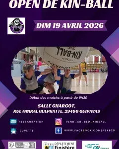 L'association Penn-ar-Bed Kin-Ball (PBKB) organise un open de Kin-Ball, sur la journée du dimanche 19 avril 2026, de 9h30 à 17h.